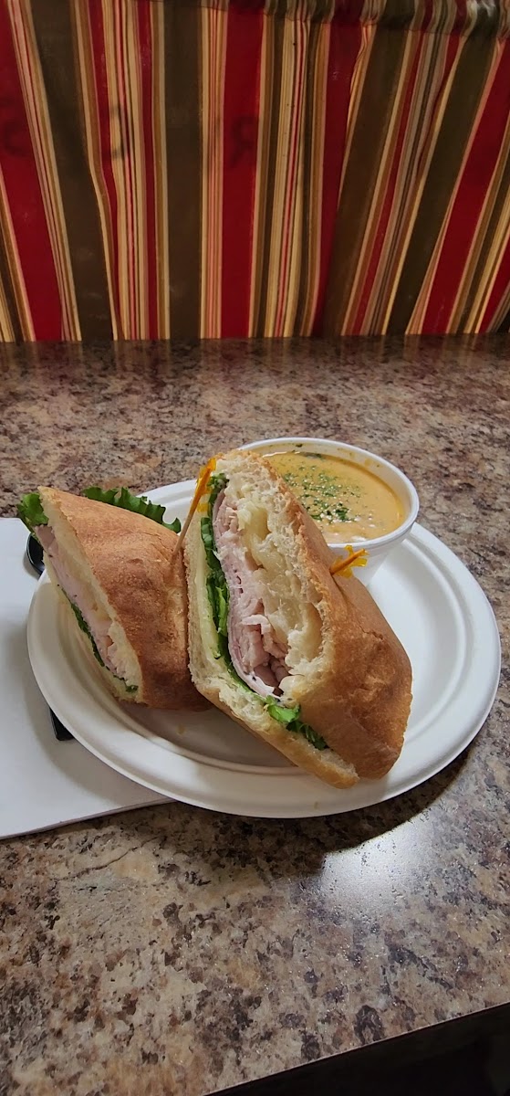 Vegetarians can indulge in the flavorful veggie sandwich, artfully crafted with layers of freshness, all set on soft squaw bread. And don't forget to complement your sandwich with a bowl of their delightful broccoli cheddar soup or their ever-changing Soup of the Day, with reports from ecstatic customers confirming its deliciousness.